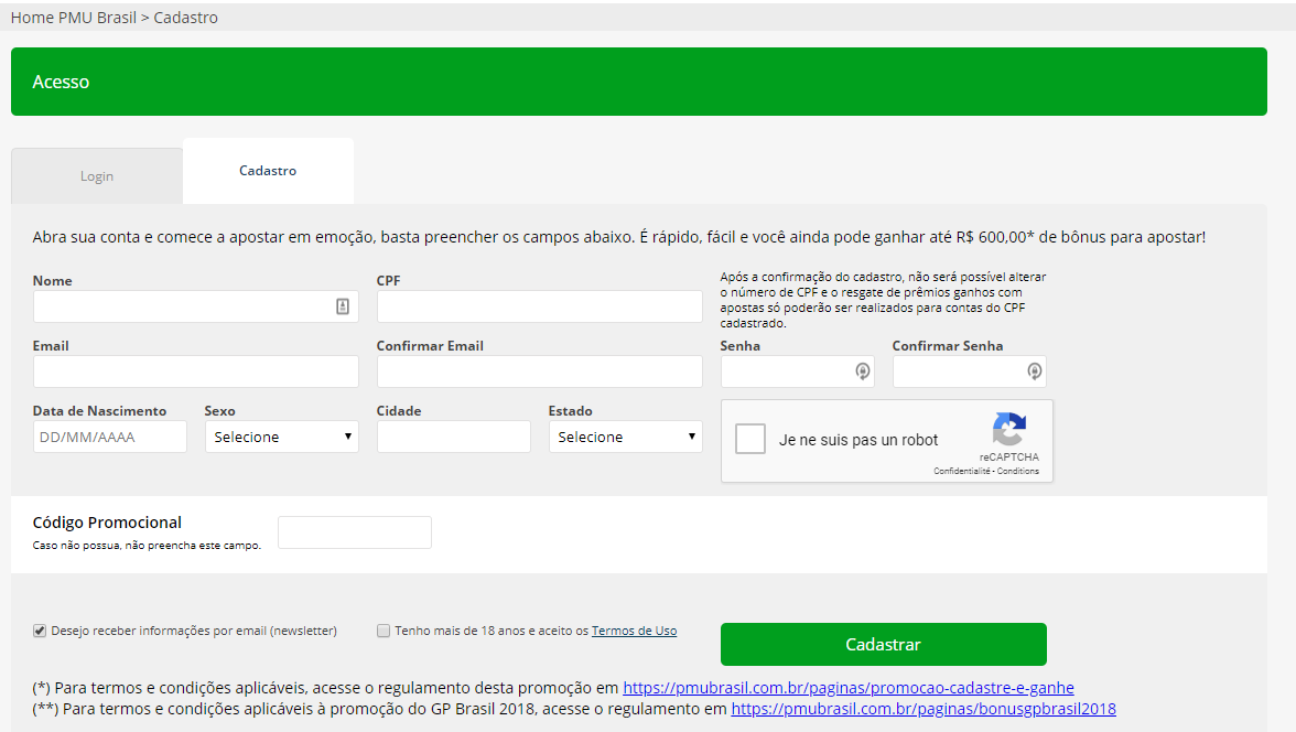 Um ponto bastante positivo do PMU é a facilidade de compreensão do site. Ele preza por ser claro e objetivo, fazendo com que mesmo os usuários mais novatos saibam se virar tranquilamente. O mesmo se aplica ao processo de abertura de conta: tudo fácil e prático.