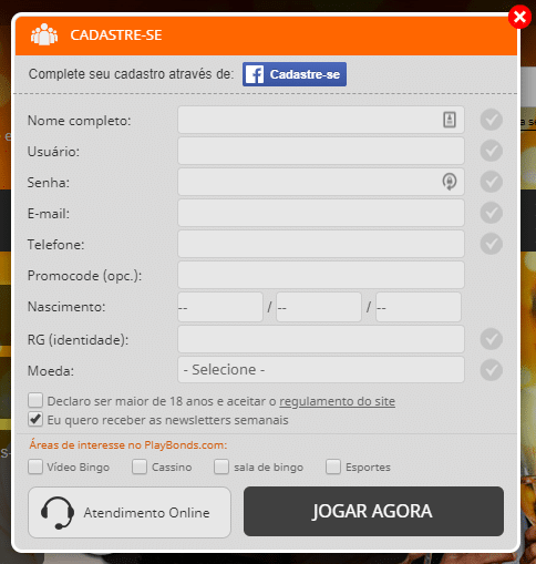 O site Playbonds tem inúmeras vantagens. Uma delas é a fácil navegação, o que simplifica até mesmo o processo de registro. Em passos simples e rápidos você tem acesso à todo o universo Playbonds, seja pelo computador ou pelo celular. E claro, não deixe de aproveitar o bônus de boas-vindas!